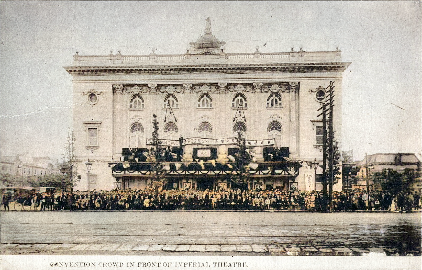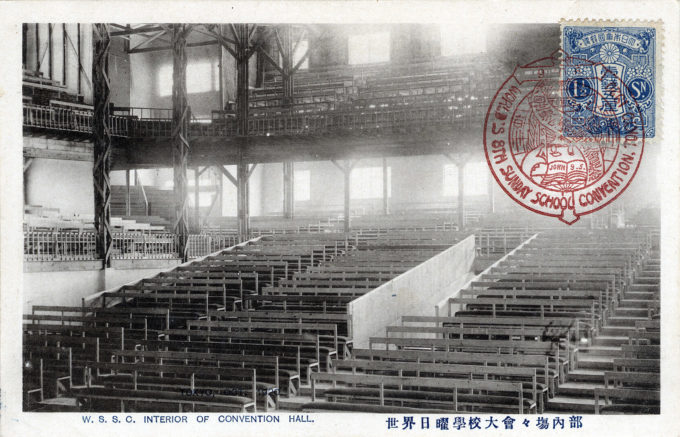 “Before these same business men left the room they had taken steps toward the securing of the Imperial Theater for the use of the Convention, and at the night meeting official announcement was made that the Imperial Theater had been secured, although a contract with a company that was then occupying the building had to be canceled, a large platform built, all of which, including the contract, platform, and rental, we were told, cost something like 40,000 yen, or $20,000, for the ten days.