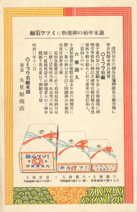 “Mitsuwa Soap for New Year’s gifts” advertising postcard, World Sunday School Convention, Tokyo, 1920. Indicative of the local business support for the international Christian gathering.