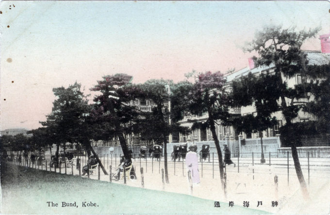 “The bund at Kobe is more elaborate than the one at Nagasaki. At Kobe, there is a boulevard running along by the water’s edge, while a fine sea wall gives a finish to the street whether seen from the land or water.”