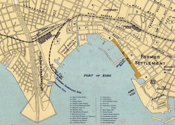 “The view of Kobe from the steamer is that of a modern and well-built city. You see a well-built jetty and some handsome buildings and a shady road along the water, which is the Bund … Kobe was founded as a foreign settlement in 1868 and it has gone ahead so rapidly that its imports and exports now exceed those of any other city in Japan except Yokohama.