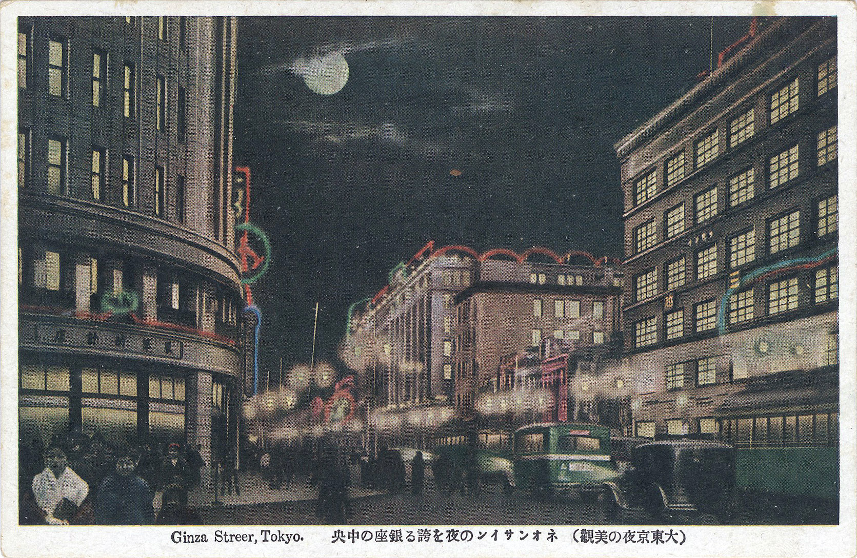 “The Tokyo street scene is best at night, like a fashionable beauty. Electric light is cheap and competition is keen, and the Ginza at night is more like foreign fireworks than a busy shopping street.
