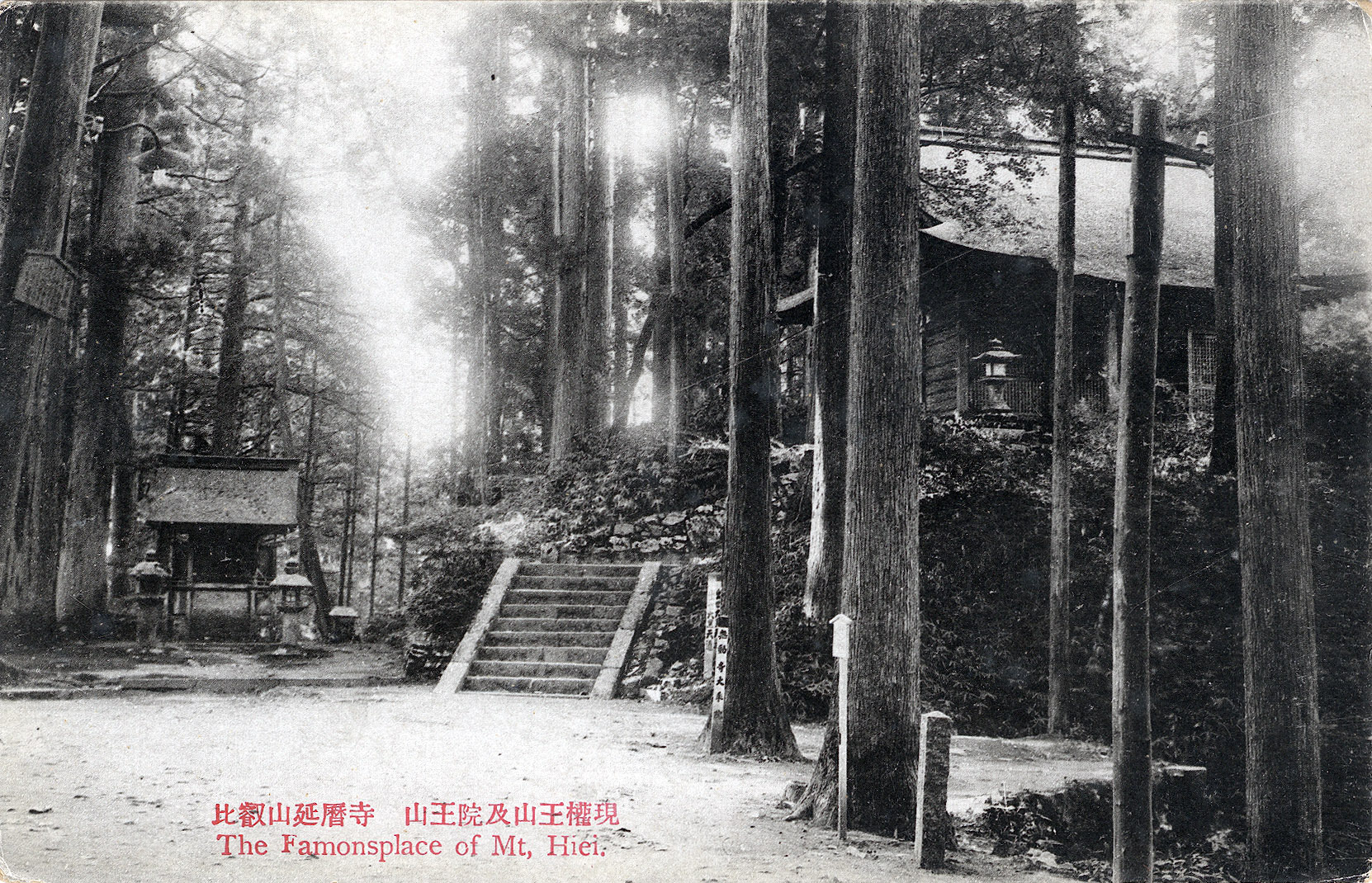 “The Famous Place of Mt. Hiei”, Enryakuji, Kyoto, c. 1930. Enryakuji was the ‘mother’ temple of the monastery founded by Saicho (767-822) during the early Heian period (794–1185), introducing the Tendai sect of Mahayana Buddhism to Japan from China.