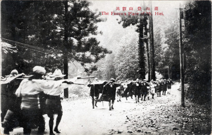 - Mt. Hiei, c. 1920. Pilgrims being carried by kago [transport litter].