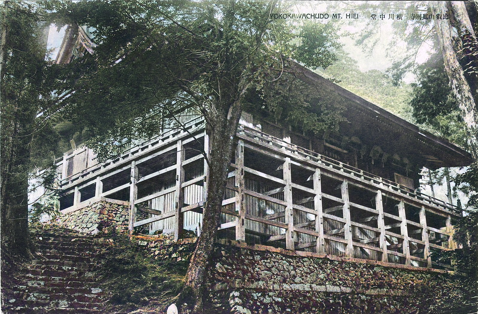 “Yokawa-chūdō”, Mt. Hiei, Kyoto, c. 1930. (Colorized) The Yokawa area’s main temple hall, houses the Sho kannon bosatsu, a wooden statue of the Bodhisattva of Compassion said to date back to the Heian Period.
