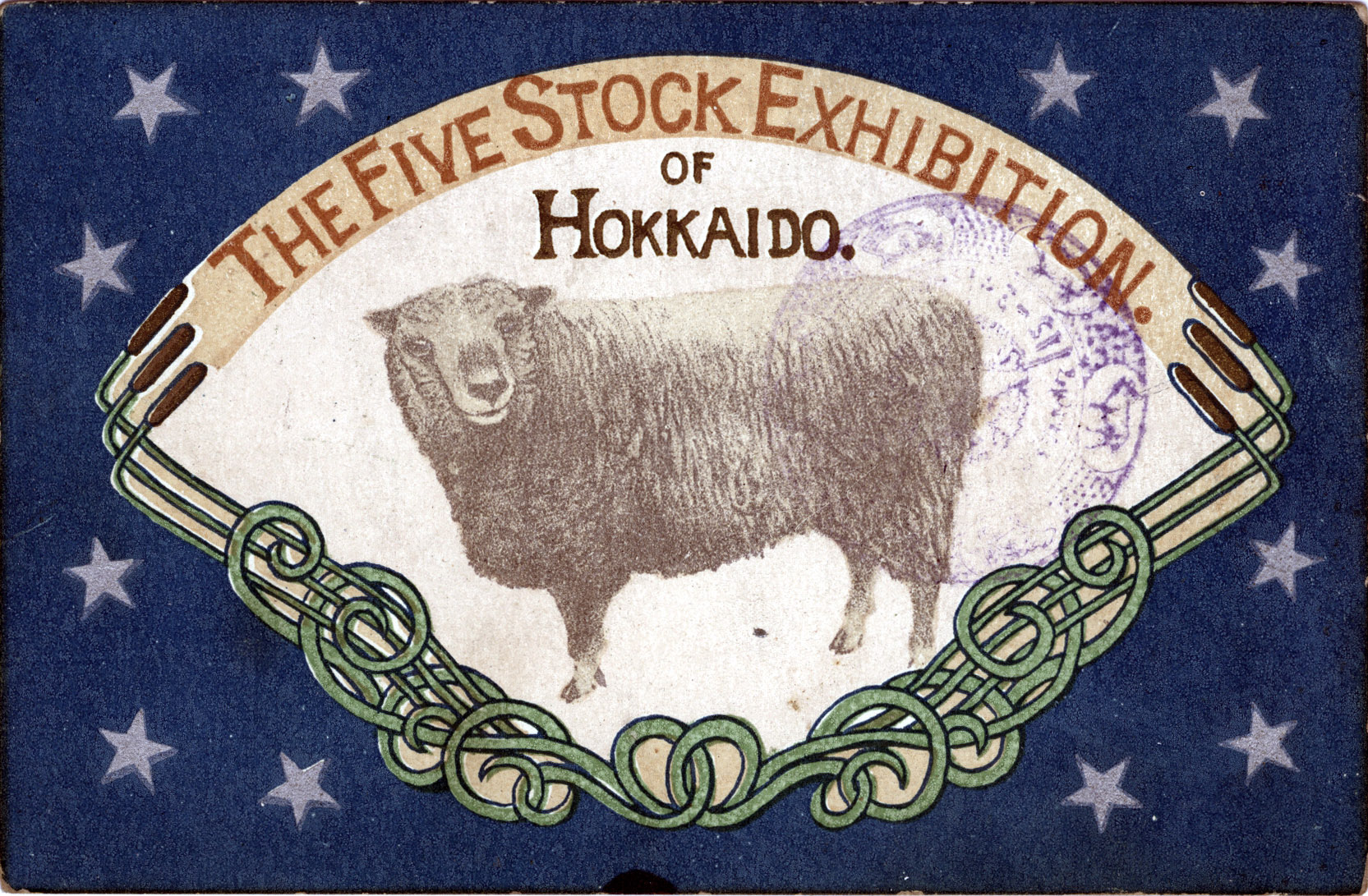 “Five Stock Exhibition of Hokkaido,” c. 1920. “Five stock” refers to the principal livestock herded on farms or ranches: Horses, cattle, sheep, swine, or goats.