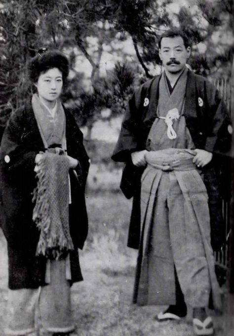 After this tumultuous beginning, Kawakami created his own acting troupe and, influenced by philosopher Chomin Nakae (who, among other accomplishments, had introduced the philosophy of Jean-Jacques Rousseau to Japan), he began staging theatrical productions as an outlet for his political views. By 1888, Kawakami had acquired some measure of national fame after composing a satirical song, ‘Oppekeppe’, whose catchy chorus (“Oppekeppe! Oppekepeppo! Peppoppo!”) imitated the sound of a bugle. It was while on an 1891 tour in Tokyo that Kawakami caught the attention of Prime Minister Ito Hirobumi who commanded the troupe to perform at a private party in the capital. At the same gathering was another invited entertainer who also shared Ito’s patronage, Yakko. Knowingly or unknowingly, when the prime minister made their introductions, he became something of their unofficial omiai [“marriage go-between”] for the pair.