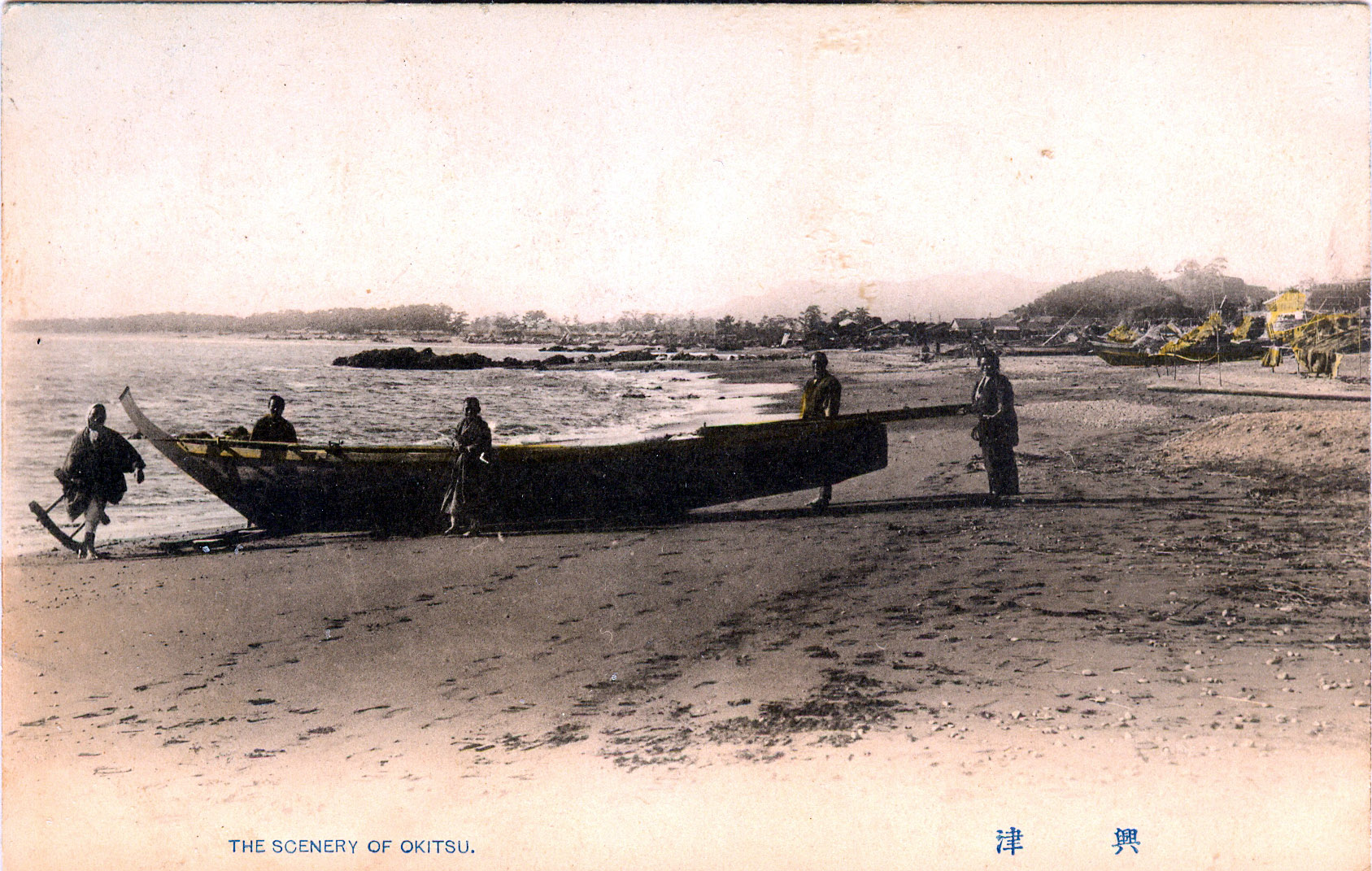 Okitsu was the seventeenth of the fifty-three stations of the Tōkaidō highway connecting the Imperial capital at Kyoto with Edo, the administrative capital of the Tokugawa shogunate. It is located near Shizuoka. The area quickly developed into a summer seaside resort for the aristocracy, politicians and noted literary figures in the Meiji and Taisho periods.
