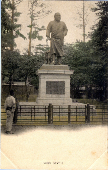 “A statue of Saigo was, nonetheless, commissioned in 1893 by the Meiji government and cast in bronze for this populist figure in modern Japanese history. However, the government chose to clothe him as a commoner, not as a military figure, a decision that irked his wife and family to no end.”
