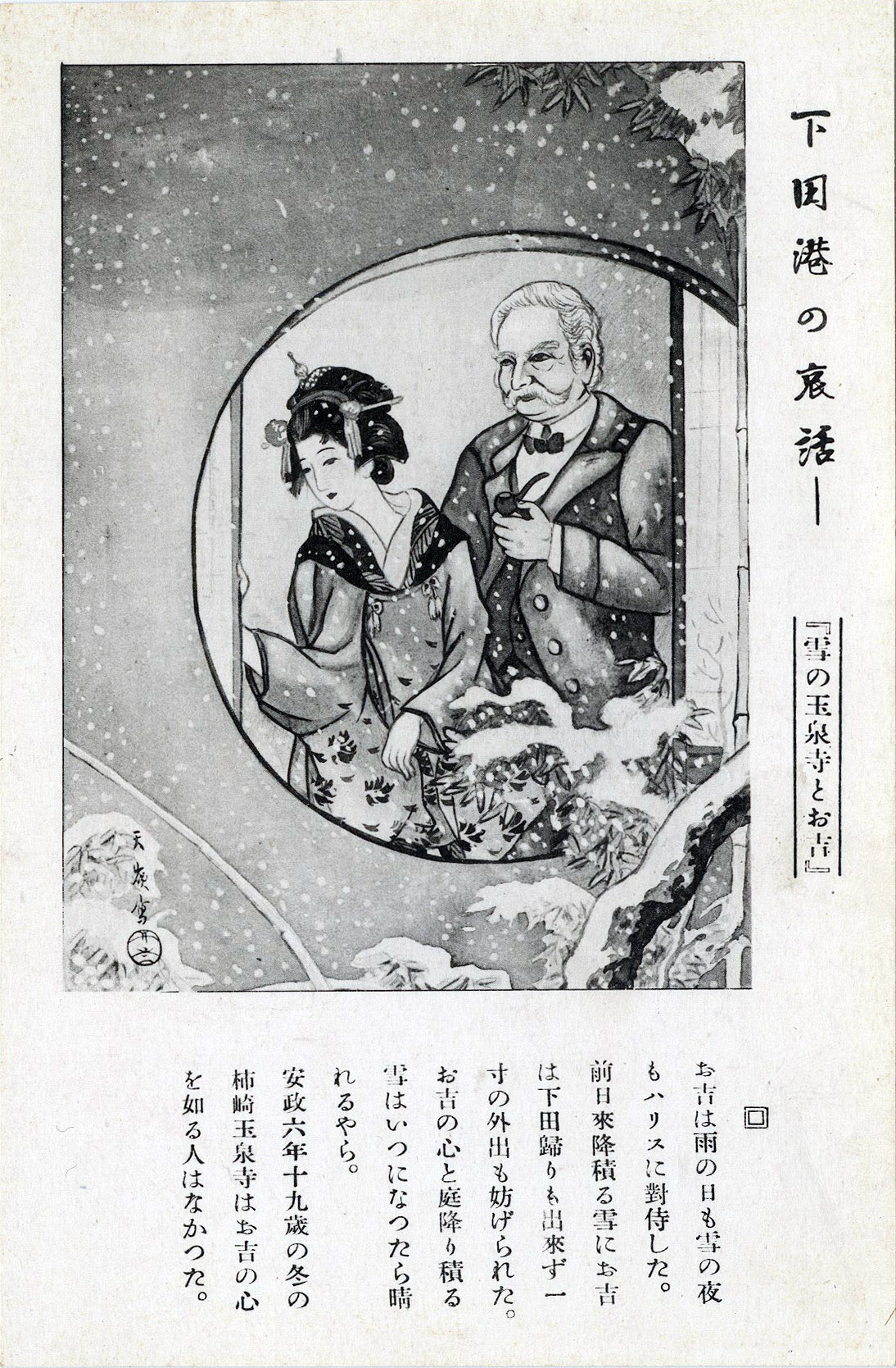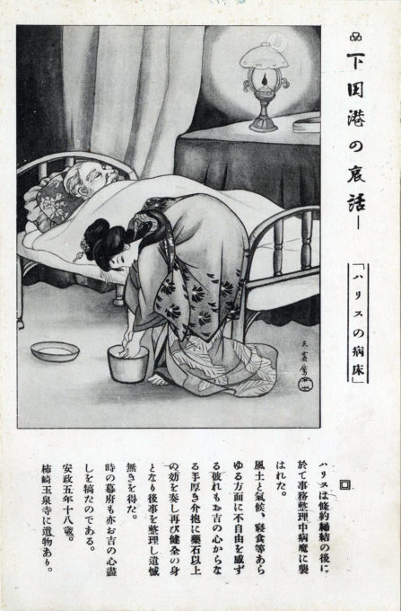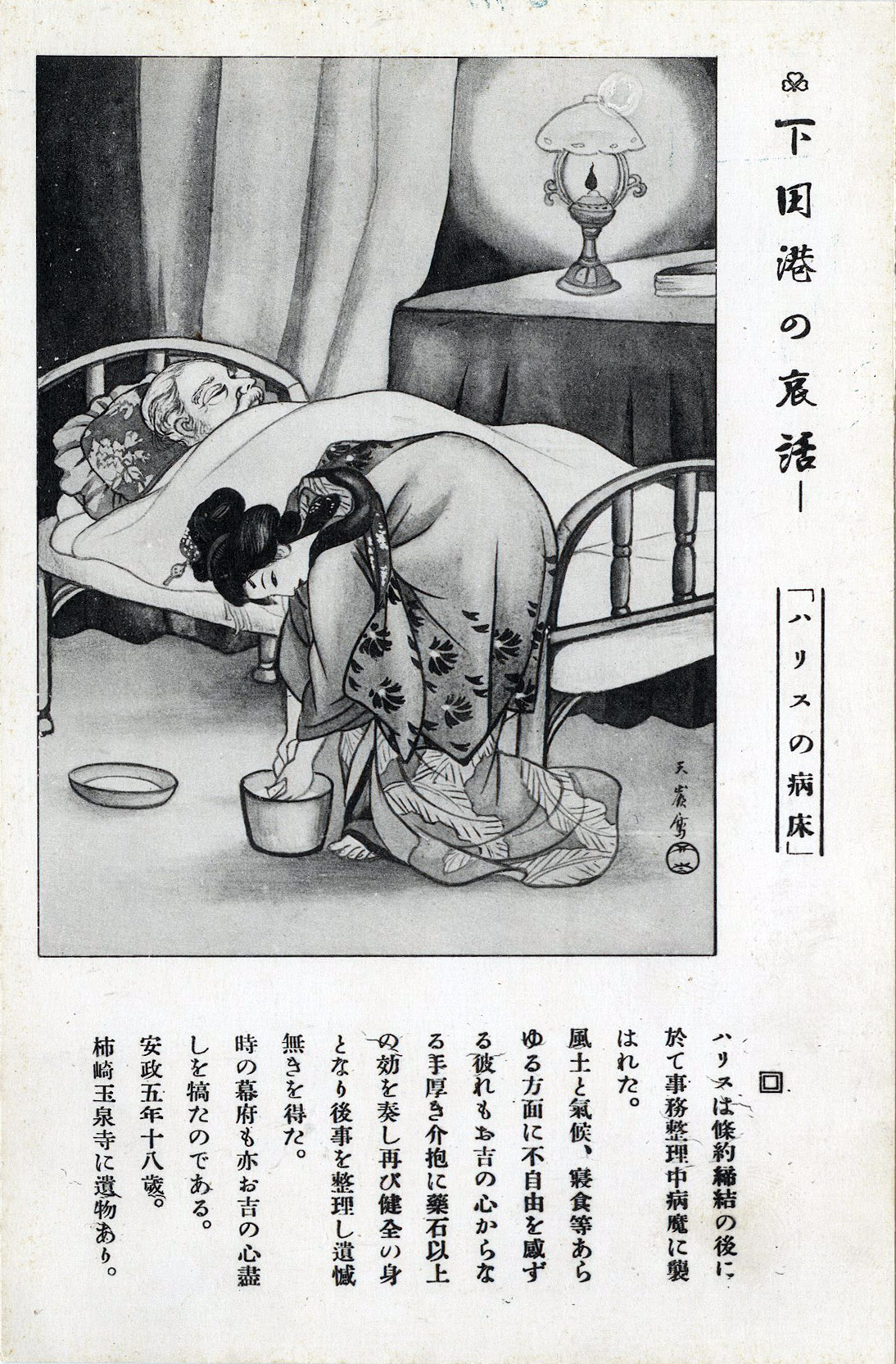 “Heusken, who cared for the bedridden Harris, asked a visiting Japanese official to provide a nurse for the consul. The Japanese had no conception of the word ‘nurse.’ The official interpreted the request as a plea for a romantic interlude. Overjoyed at the prospect of a liaison to bind the stubborn Harris to Shimoda, officials scoured the port for a suitable woman.