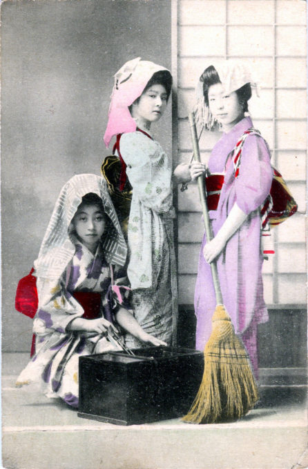 “Learning by observation once meant gradually becoming accustomed to the geisha world by the simple fact of being around other geisha. Girls of ten to twelve years old, laboring in the teahouses as maids (shikomi), were thought to be learning by observation for their eventual careers as geisha. They often suffered in the process, but a little suffering was thought to help them become stronger women and better geisha. Long hours of arduous work and strict shamisen and dancing lessons were the rule. Most places drew the line at out and out cruelty, at least.”
