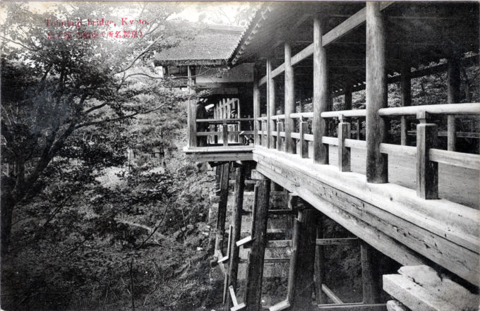 “Tofukuji [東福寺, trans. ‘east fortune temple’], one of the chief monasteries of the Zen sect, was founded by Shoichi Kokushi in the 13th century. It is noted for the maple trees lining both sides of a gully which is spanned by a bridge or gallery called Tsu-ten-kyo, that is ‘the bridge communicating with heaven.’ This gallery and a tower in the roof give to Tofukuji an original and striking appearance.