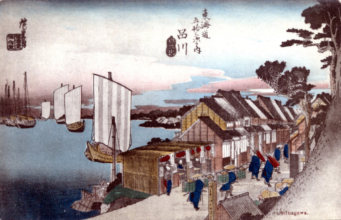“Shingagawa was the post station at the end of the first of the fifty-three stages on the Tokaido, the East Sea Road, which connected Edo with Kyoto and Osaka … The East Sea Road was one of five great highways [Go-kai-do] that led out of Edo, and travelers to or from distant provinces, especially if they were feudal lords, were compelled to take whichever of these highways served their part of the country.