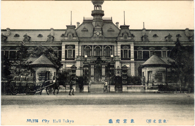 “In 1888, the central government created the legal framework for the current system of cities (shi) that granted some basic local autonomy rights – with some similarities to Prussia’s system of local self-government as Meiji government advisor Albert Mosse heavily influenced the organization of local government. But under a special imperial regulation, Tokyo City, like Kyoto City and Osaka City, initially did not maintain a separate mayor; instead, the (appointed) governor of Tokyo Prefecture served as mayor of Tokyo City. The Tokyo city council/assembly (Tōkyō-shikai) was first elected in May 1889. The city hall of Tokyo was located in the Yūrakuchō district, on a site now occupied by the Tokyo International Forum.