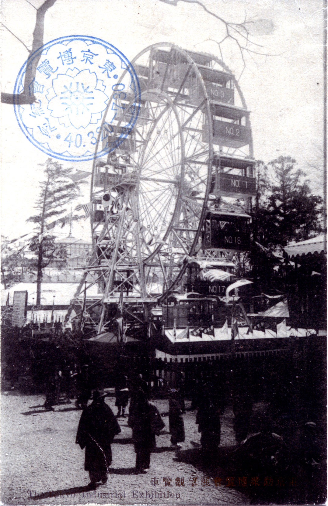 At the conclusion of the Exhibition, the Ferris wheel was removed and relocated to the Hanayashiki amusement park at Asakusa Park.