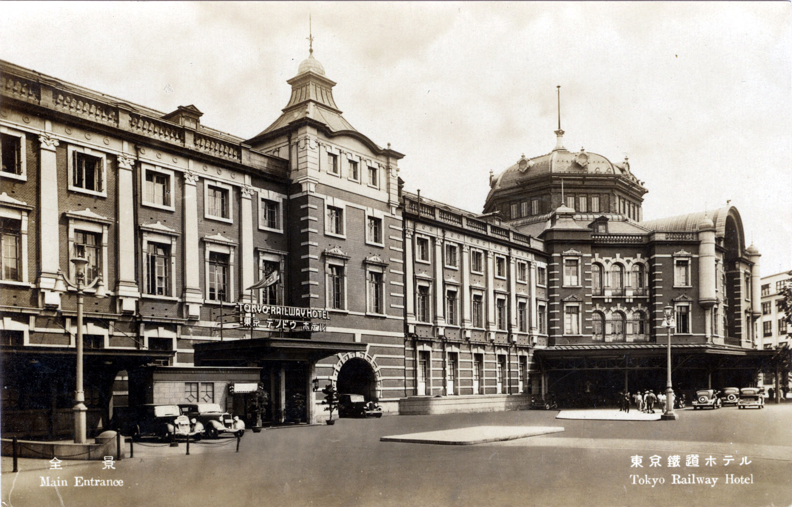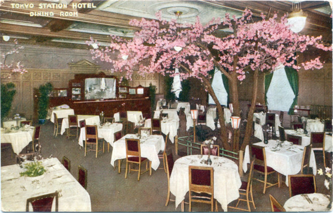 Tokyo Railway Hotel (Tokyo Tetsudo Hoteru), Tokyo, c. 1940. Opened in 1915, a year after the opening of Tokyo Central Station, the Tokyo Station Hotel was a European-style hotel that showcased magnificent architecture and state-of-the-art (for its time) facilities and banquet rooms. The hotel entertained 4,500 foreign guests and 2,500 Japanese guests in the first half of 1917.