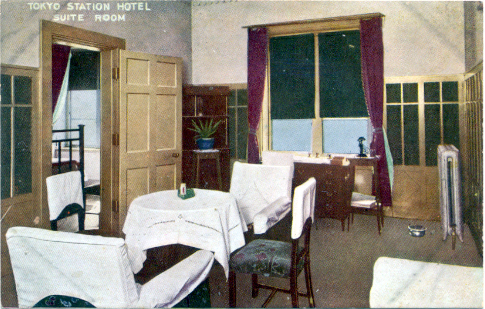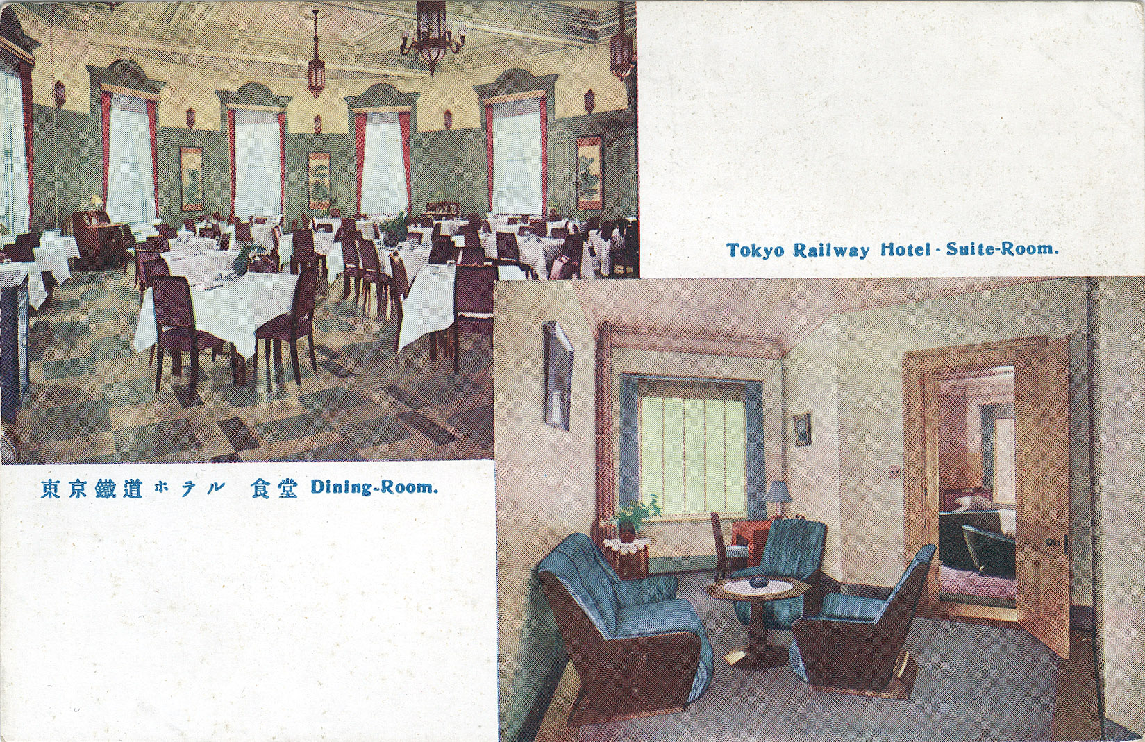 Hotel suite-room and dining room, Tokyo Railway Hotel, c. 1930.