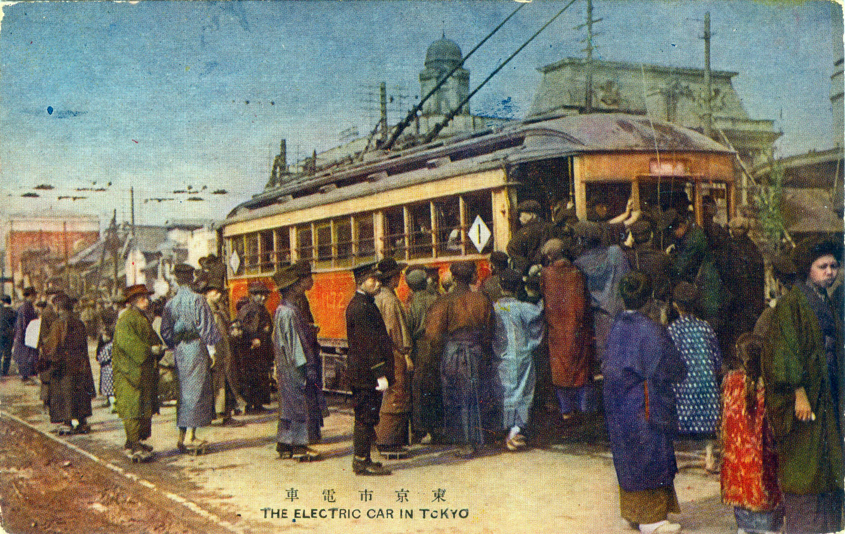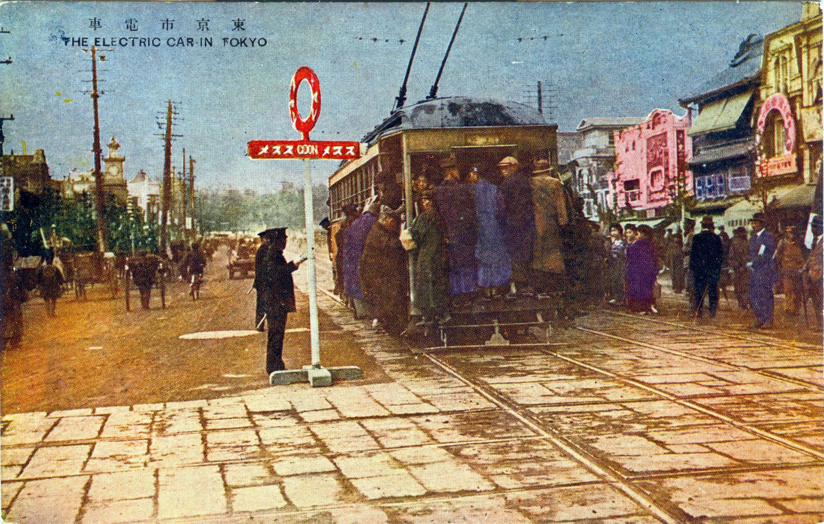 “All of the former horse-bus routes were electrified by 1904, and streetcar service was extended throughout the center of the city, connecting Shimbashi Station and such flourishing entertainment and commercials areas such as Ginza, Ueno Park, and Asakusa.