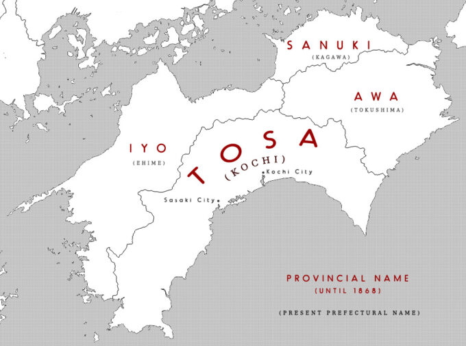 “… [Shikoku] is now divided into the four prefectures of Tokushima, Kagawa, Ehime, and Kochi, corresponding respectively to the old provinces of Awa, Sanuki, Iyo, and Tosa.”