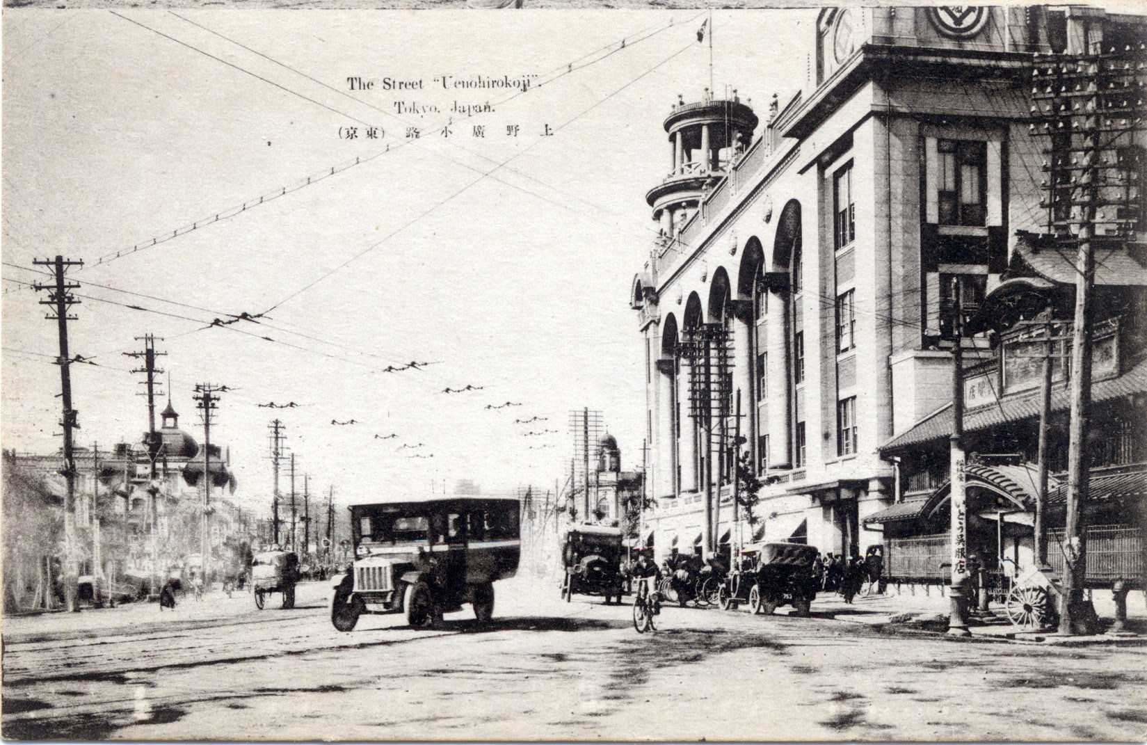 - Street view of Ueno Hirokoji, from the Matsuzakaya store, c. 1920.
