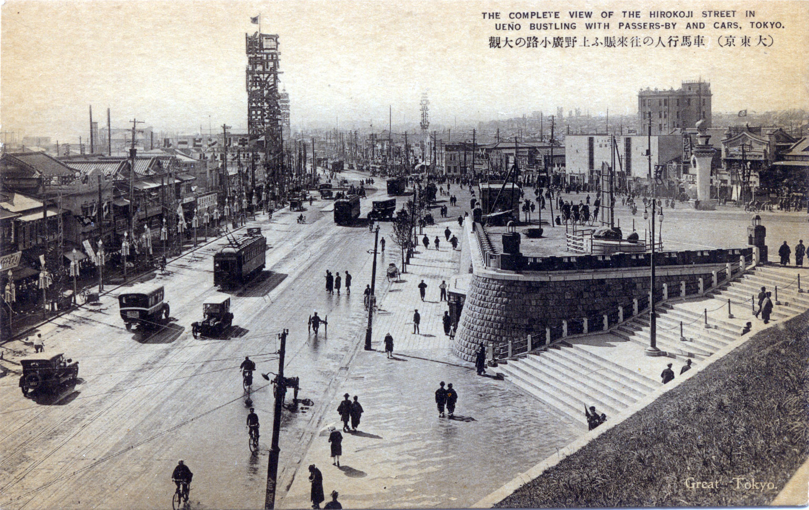 - Elevated view of Ueno Hirokoji, Tokyo, c. 1920.
