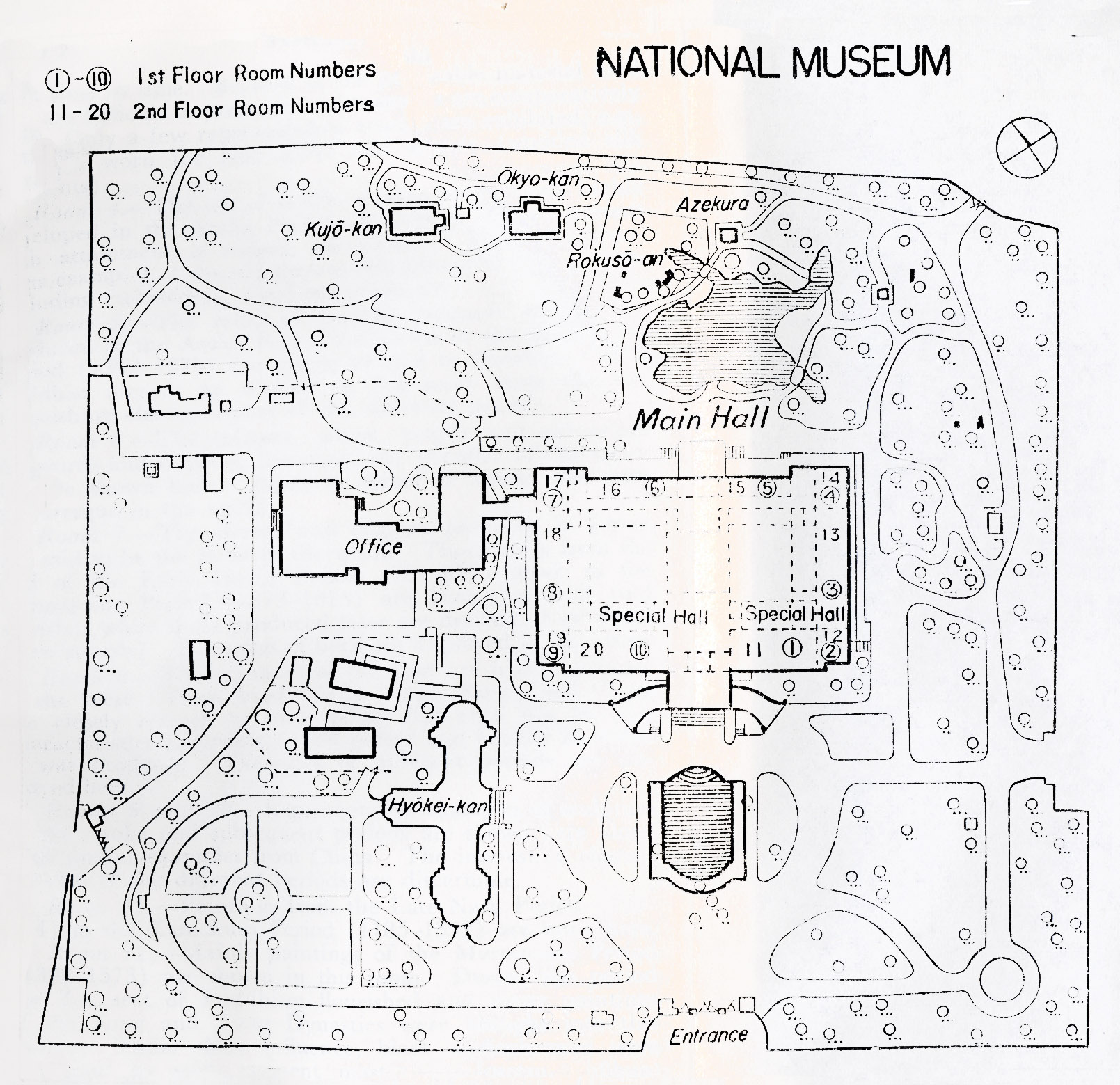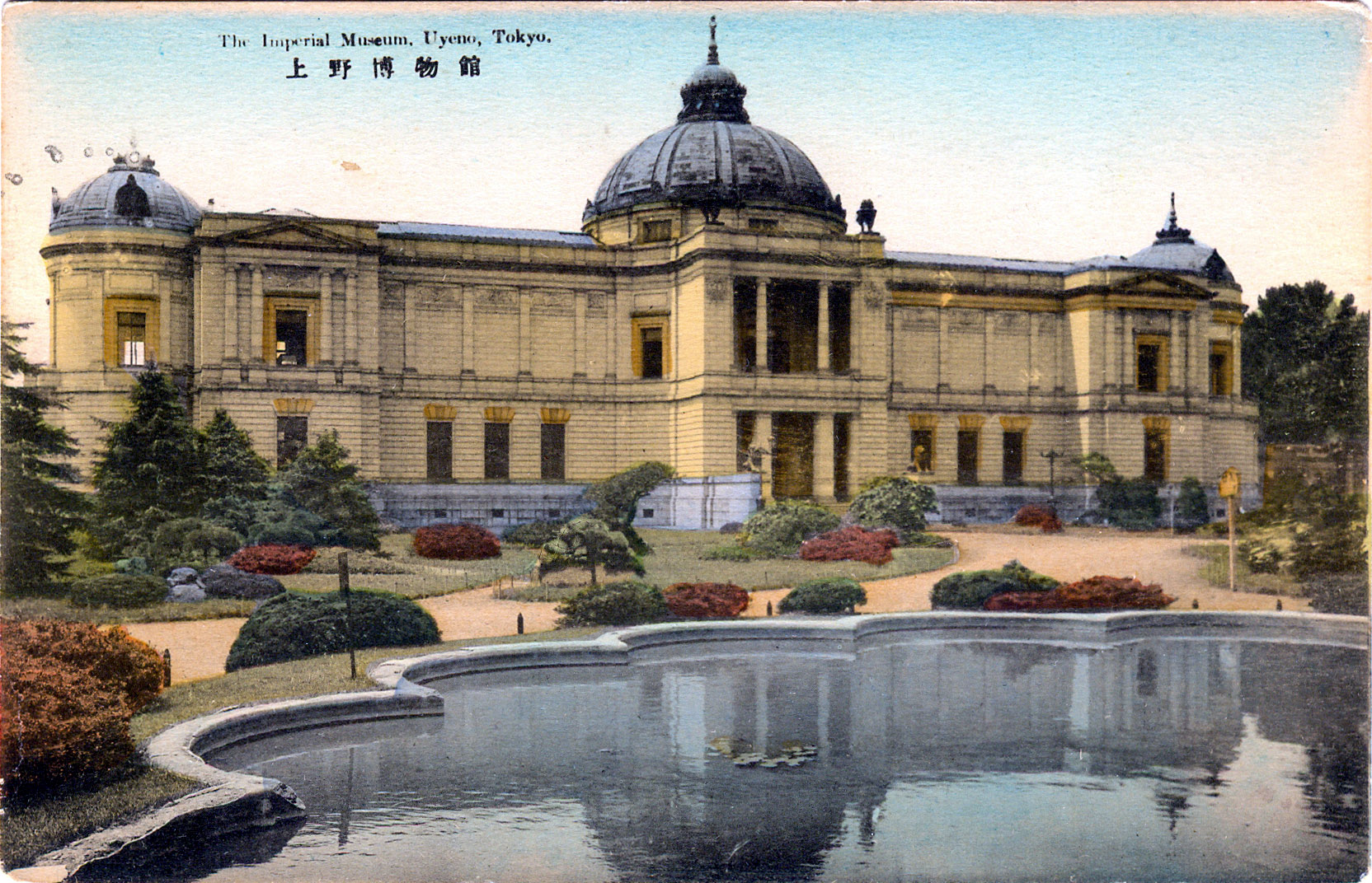 The Tokyo National Museum (Tōkyō Kokuritsu Hakubutsukan) was established in 1872, is the oldest Japanese national museum, and the largest art museum in Japan. Soon after the opening, the museum moved to Uchiyamashita-cho (present Uchisaiwai-cho), then in 1882 moved again to the Ueno Park (on the site formerly occupied by the headquarters of the Kan’ei-ji Temple), where it stands today. Located (along with the Hyokeikan) at the north end of Ueno Park, the original Main Gallery – designed by the British architect Josiah Conder, as seen above – was severely damaged in the Great Kanto earthquake of 1923. The museum went through several name changes, being first called the Imperial Museum in 1886 and, then, the Tokyo Imperial Household Museum in 1900. The present-day Honkan was constructed after the earthquake in a more Eastern ’emperor’s crown style’. Construction began in 1932, and the building was inaugurated in 1938. The museum was closed in 1945 during the final months of World War II.