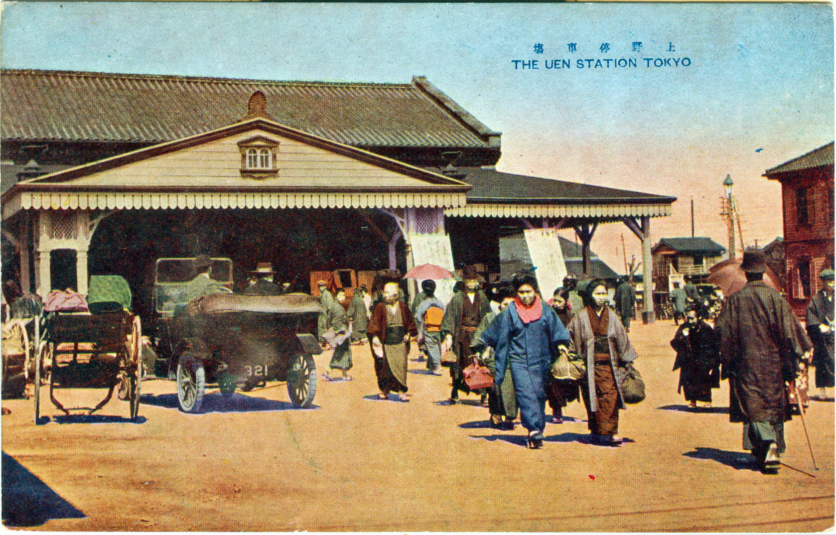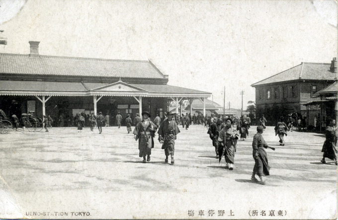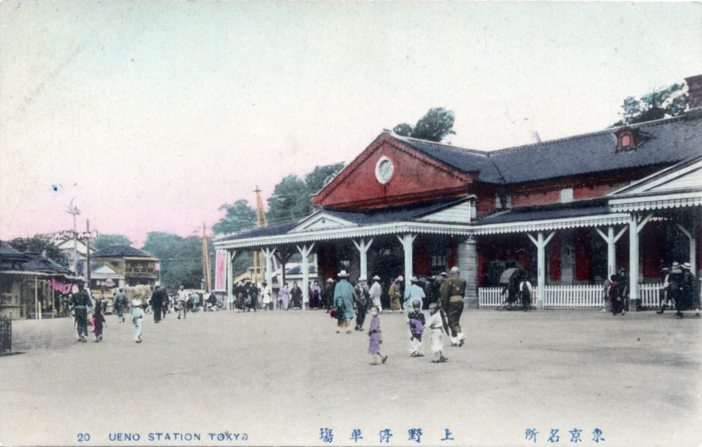 “Ueno Station has absolutely no elegance of any kind. It has a roof to keep off the weather and that roof is supported by plain wooden posts; there are one or two necessary pens at the end for luggage and tickets and that is all; and for my part I cannot see what more in the name of common sense is wanted in a railway station.