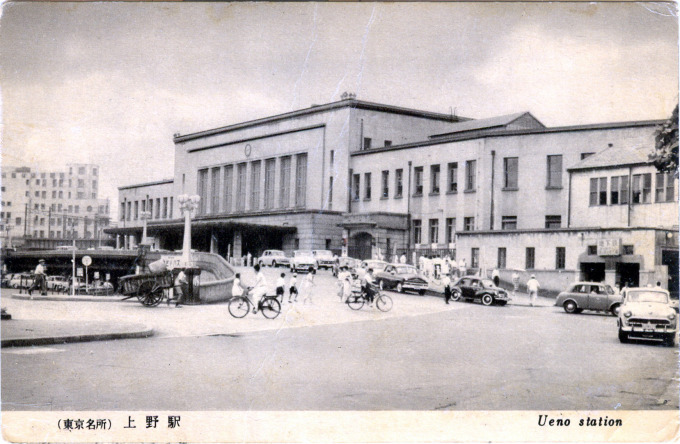 Gutted by fire during wartime bombing in 1945, Ueno Station would be reconstructed during the Occupation. Outside, nearby, would be a flourishing black market that came to be known colloquially as Ameyoko [American Alley], where surplus (and stolen) American goods could be bought.