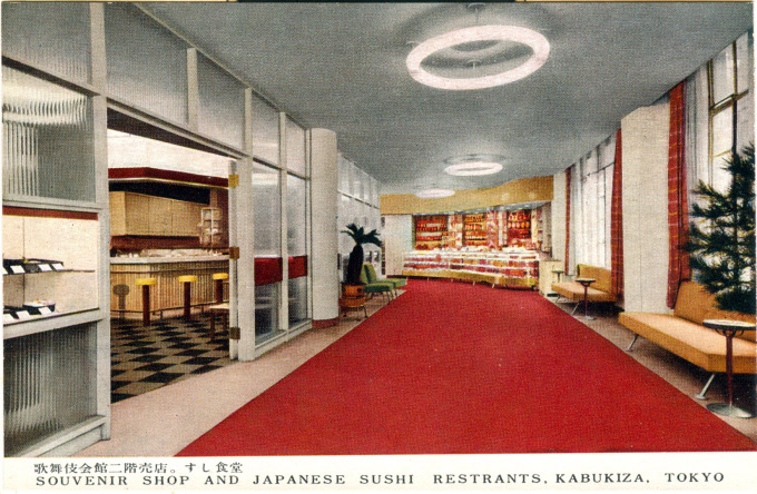 - Japanese sushi restaurant, Kabukiza, Tokyo, c. 1960.