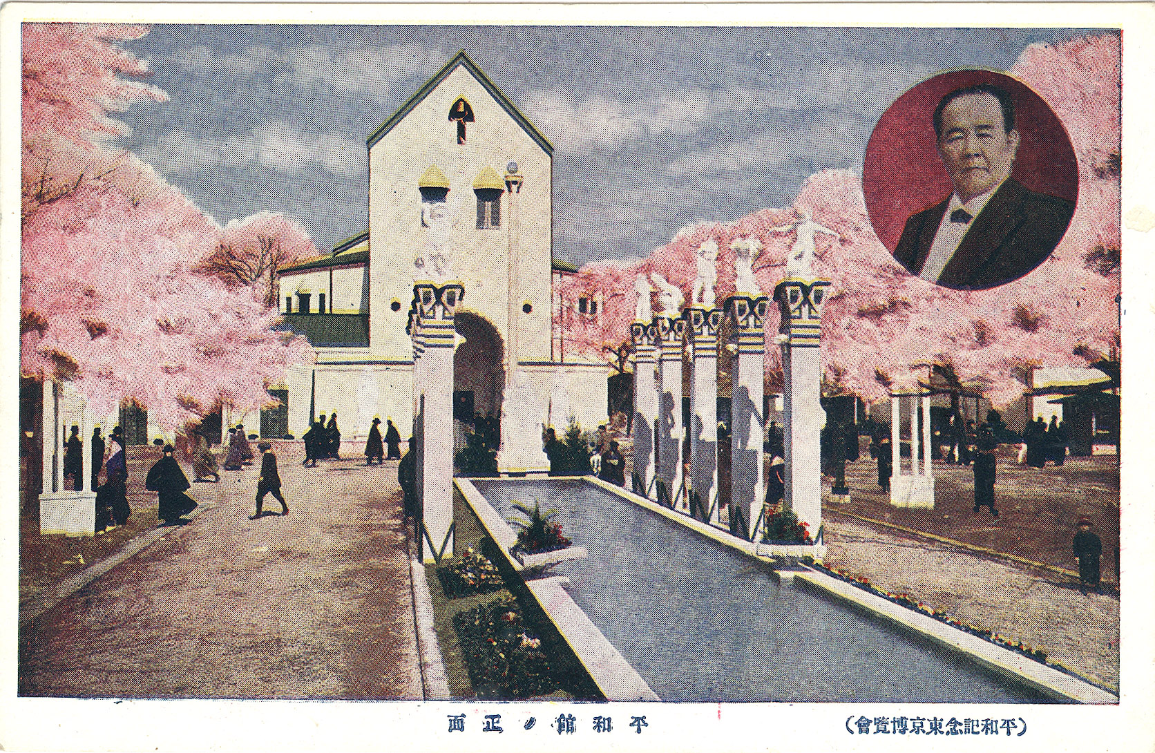 “Peace Hall’ and exposition sponsor Viscount Shibusawa Eiichi, Peace Commemorative Exposition, Ueno Park, Tokyo, 1922.