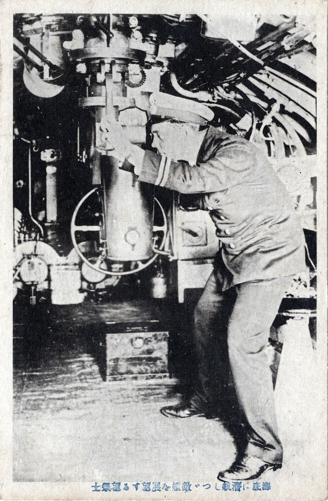 “The submarine’s onslaught in angry seas.” I.J.N. Submarine Ro-33, c. 1935.