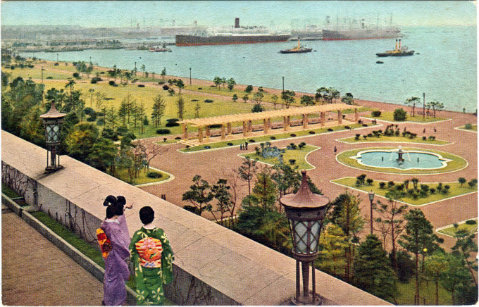 “The park was requisitioned in 1945 during the Occupation of Japan (1945-1952) for US military housing, reverting back to Japanese control in 1960. Adjacent to the park is the Hotel New Grand where General Douglas MacArthur spent his first night on his arrival in Japan on August 30, 1945.