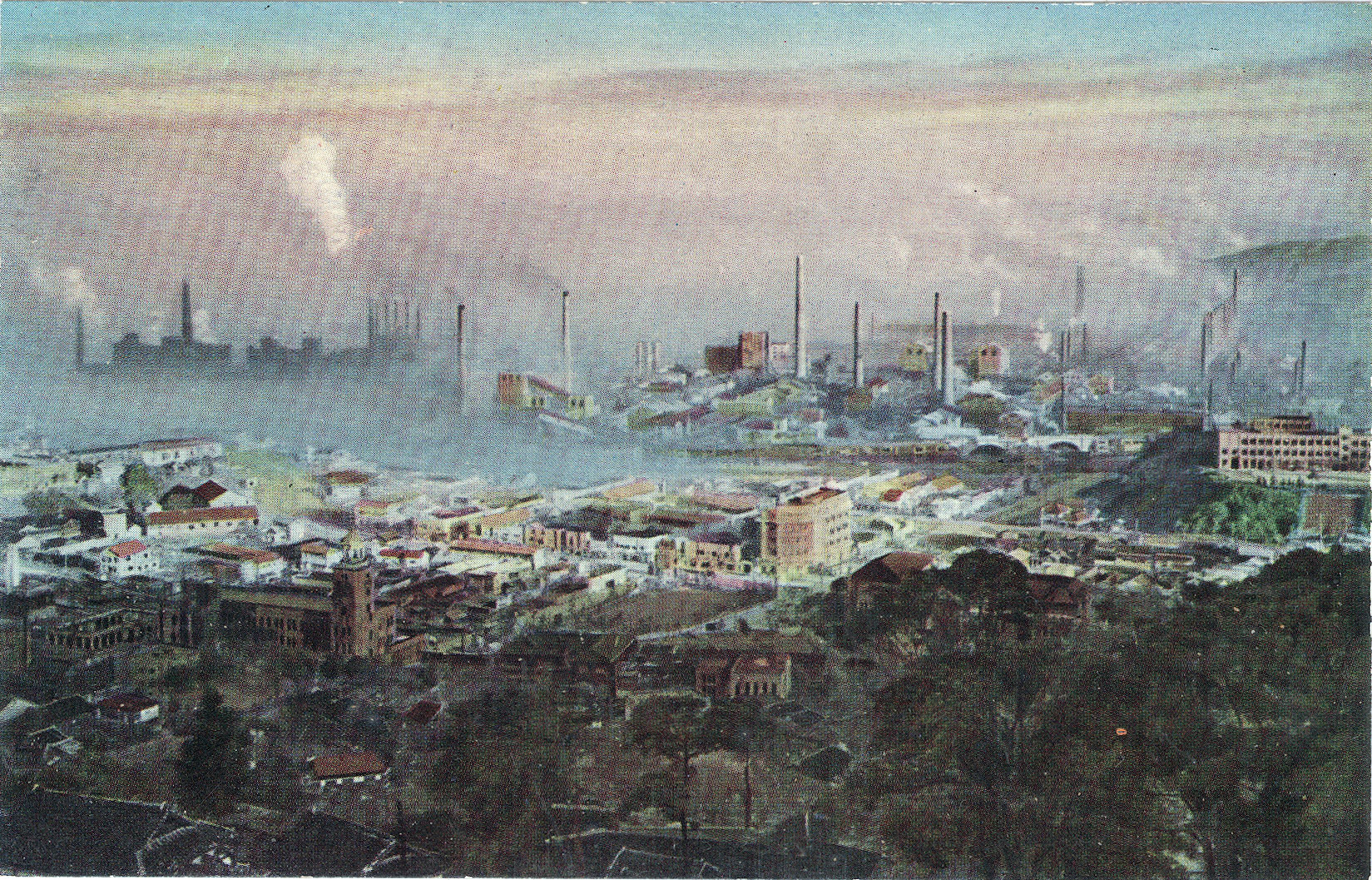 “The Imperial Steel Works was established in 1896 to meet increasing demand from the nation’s burgeoning shipbuilding, railway, construction, and armaments industries. The site chosen was the former town of Yawata (now merged into Kitakyūshū) near coal mines and with easy access to the sea.