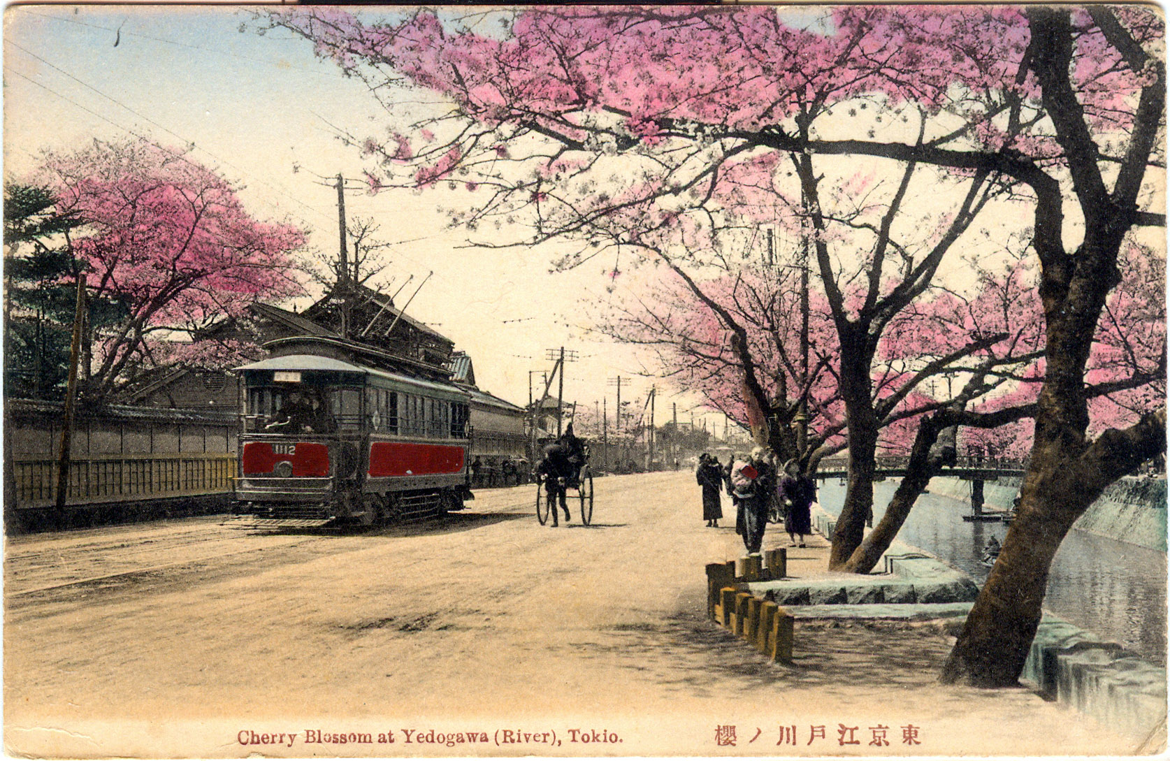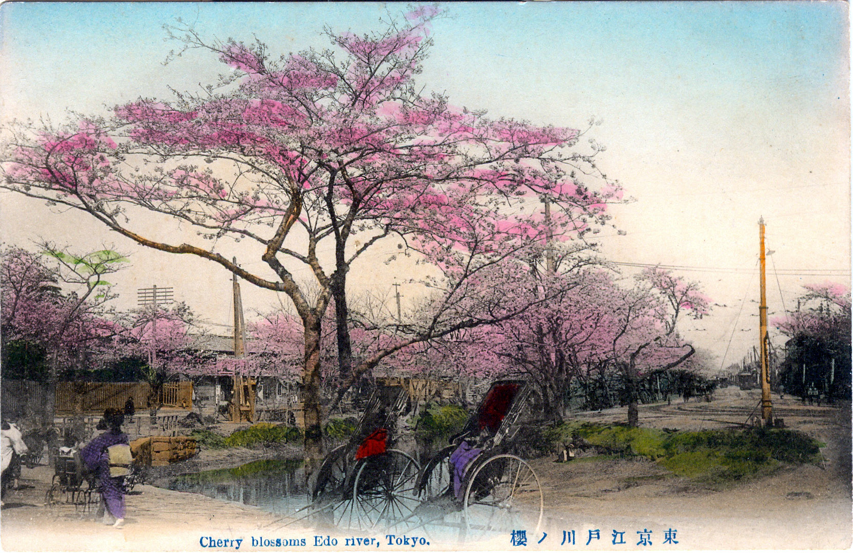 - The Cherry Blossoms at Edo River, Tokyo, c. 1910.