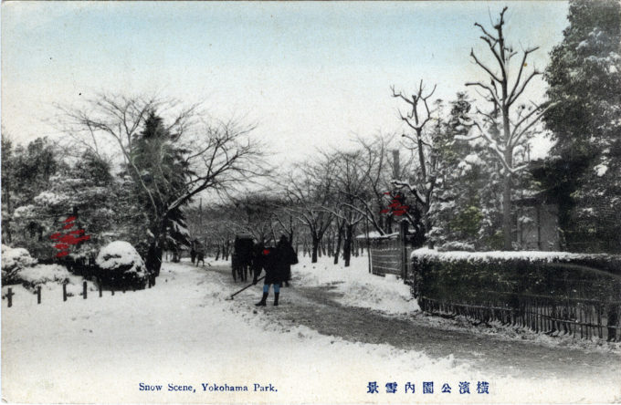 “… Considerable damage has been caused in the harbour and on land by the heavy snow of Wednesday night and Thursday morning, which had the effect of stopping shipping traffic during the whole day … Serious damage appears to have been caused on land. In Yokohama the telephone, telegraph and electric wires are down in many places in Yamashita-cho, on the Bluff and in outlying districts, and in not a few cases the poles bearing the wires have quite collapsed. Costly trees and plants in grounds on the Bluff have collapsed under the combined pressure of the gale and the snow and sleet.