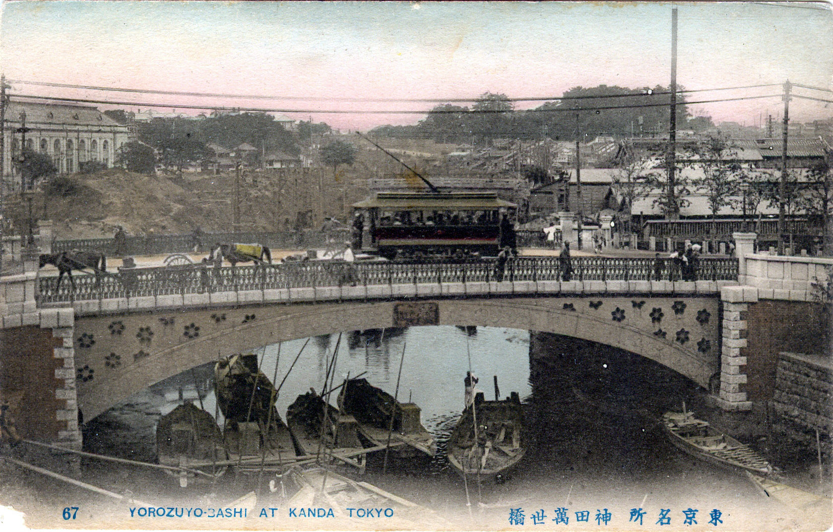 “It was the then-governer of Tokyo, Tadahiro Okubo, who wanted to name the span (completed in 1903 of stone and iron) Yorozuyo-bashi. replacing an earlier bridge called Megane-bashi [eye-glass or spectacles bridge]. But ‘Yorozuyo-bashi’, however, seemed too complicated even for the locals. So, the alternative reading – Manseibashi – was instead used after the Chuo Main Line terminal was opened at the intersection in 1912.