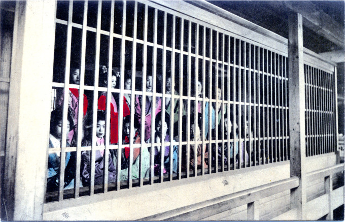 - Yoshiwara prostitutes behind a brothel grate, c. 1910.