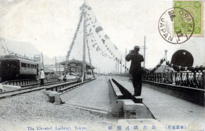 “On the 25th ult. the section of the over-head railway in Tokyo, from Yurakucho to Karasumoricho [Shimbashi], was opened to traffic. Passengers are thus enabled to travel from Yurakucho to Uyeno by this line, but to do so they have to make a wide circuit via Meguro and Shinjuku. The scale of fares fixed by the railway authorities is interesting.